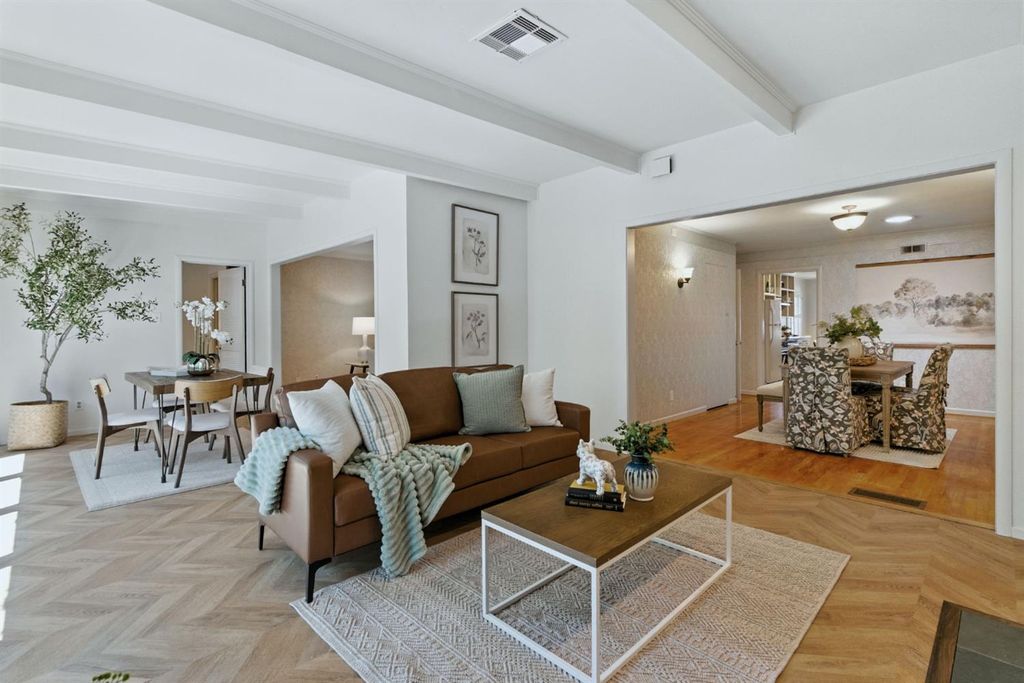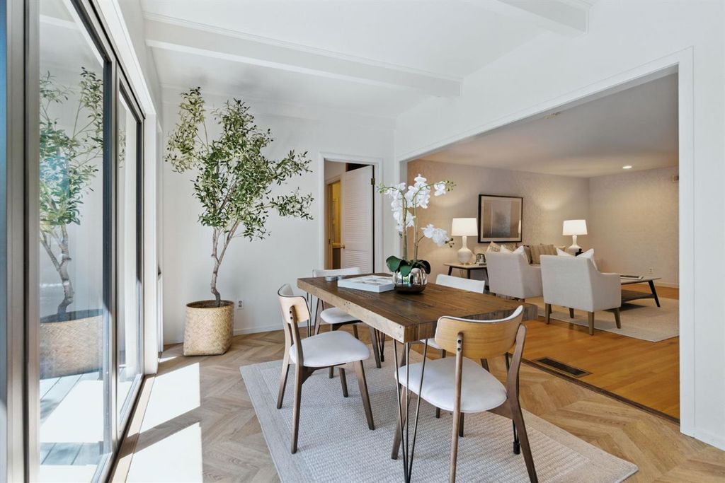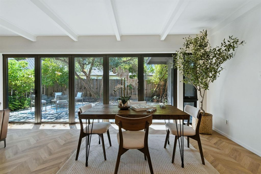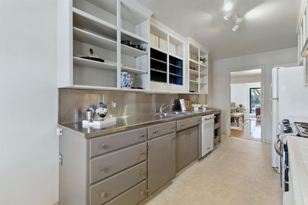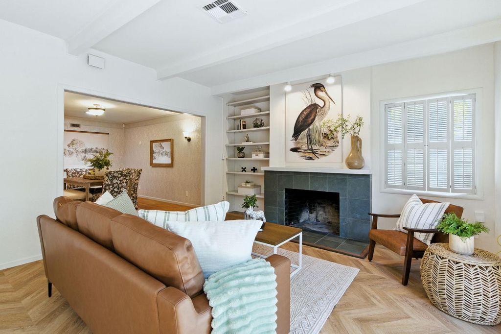 Classic Mid-Century Modern Elegance. Unexpected comfort and peace tucked into tree-lined pocket neighborhood of UOP. Custom floor plan provides space, abundant natural light and seamless indoor-outdoor flow. It is a home built for living well. Owned Solar! Quietly elegant interior filled with thoughtful touches: hardwood floors, skylight, wall sconces, Dutch door, pocket doors, dual fireplaces, built-in bookcases. Here, architectural doors open wide to the backyard, inviting nature in and blurring the line between inside calm and outside serenity. The artful kitchen features open cabinetry to display your favorite dishes, a sleek stainless-steek countertop and a sunny breakfast nook that looks out to the front yard-perfect for morning coffee. For more formal gatherings, a dining room with hidden China cabinets offers understated sophistication. Two spacious bedrooms and three updated full-tile bathrooms,including safety features like pull bars. The primary suite is a sanctuary with a large glass slider to the back patio. Family room's open feel is perfect for game nights,entertaining or curling up with a book. The private backyard features guava and yummy orange trees. Central HVAC. Short walk to UOP & Miracle Mile on tree-lined streets.