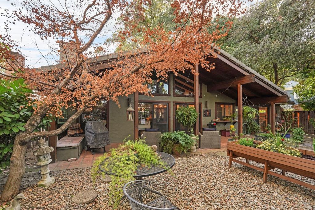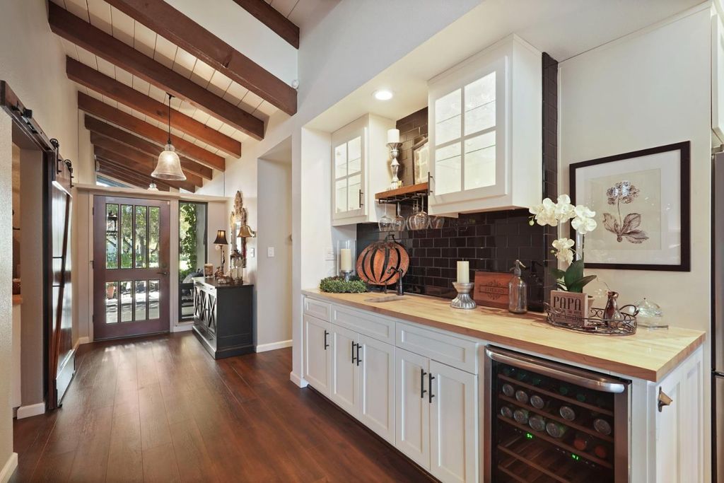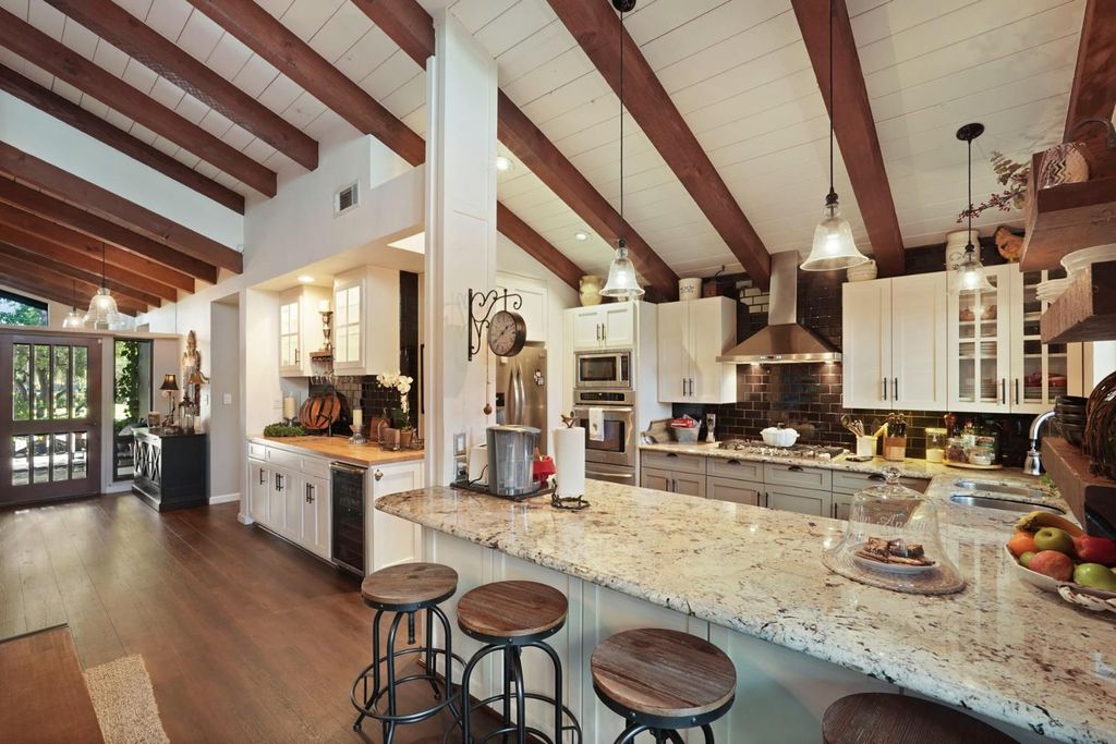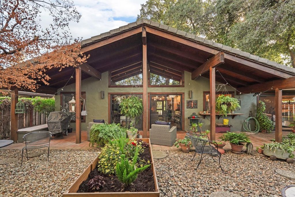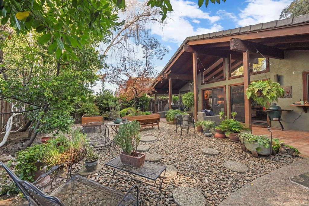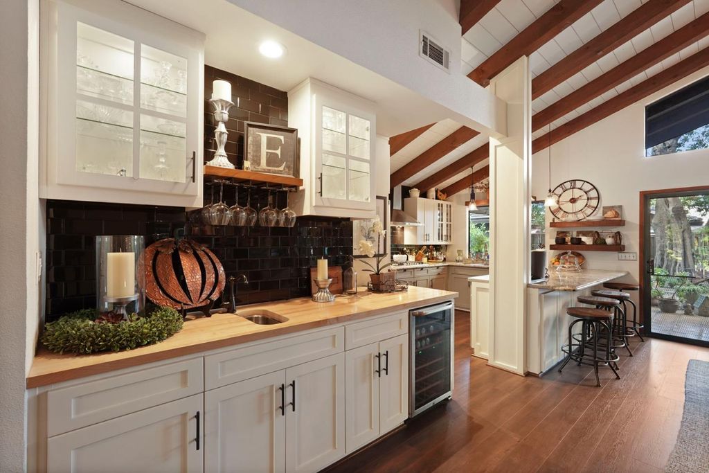 Exceptional Lodi residence blending timeless character with modern luxury. Ideally located near Lodi Lake, downtown Lodi, and historic Woodbridge, this beautifully remodeled 3-bedroom, 2-bath home offers elegant living inside and out. Fully updated in 2017-2018, it showcases cathedral ceilings with exposed wood beams, and a new hearth fireplace. The gourmet kitchen features custom cabinetry, stainless steel appliances, floating shelves, and a wet bar with a wine refrigerator, perfect for entertaining. Natural light fills the home through four skylights, including one in the laundry room, two in the hall, and one in the spa-inspired primary bath. The primary suite includes a walk-in closet, while the laundry room offers built-in cabinets, a sink, and a folding shelf behind a charming barn door. Additional highlights include a newer HVAC system and an attic fan for energy efficiency. Enjoy the park-like setting with a drip system, front deck, and a unique wine cellar/storage shed. The home's front entrance features the original gate from the historic Carnegie Library. A true entertainer's dream, this home impresses at every turn.