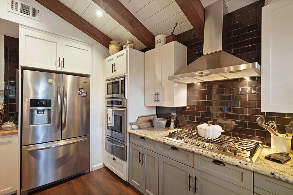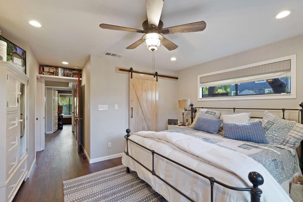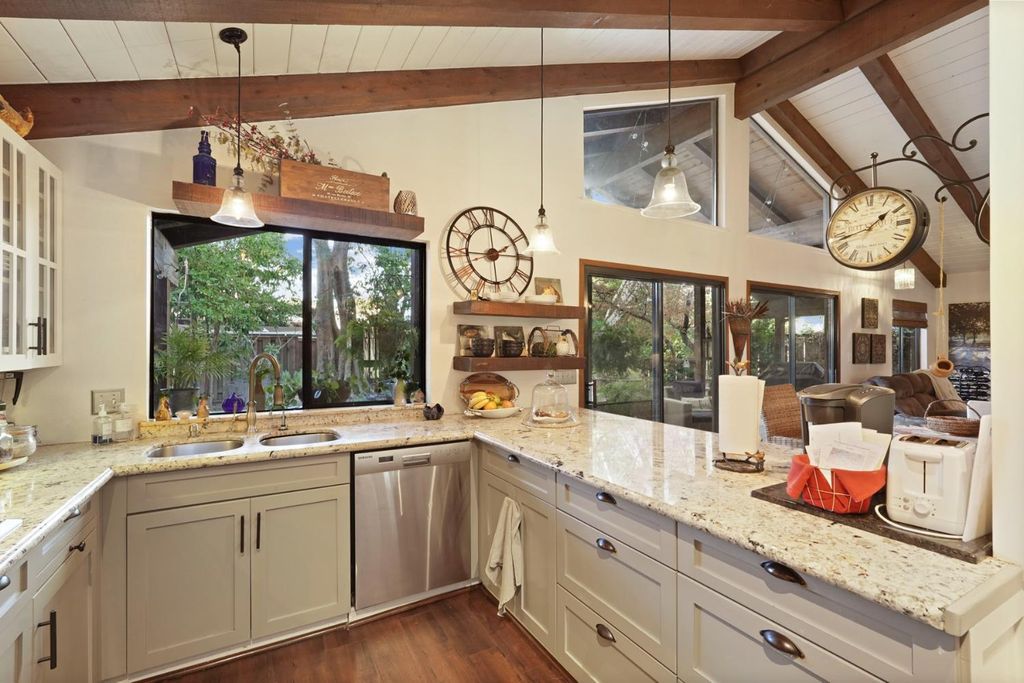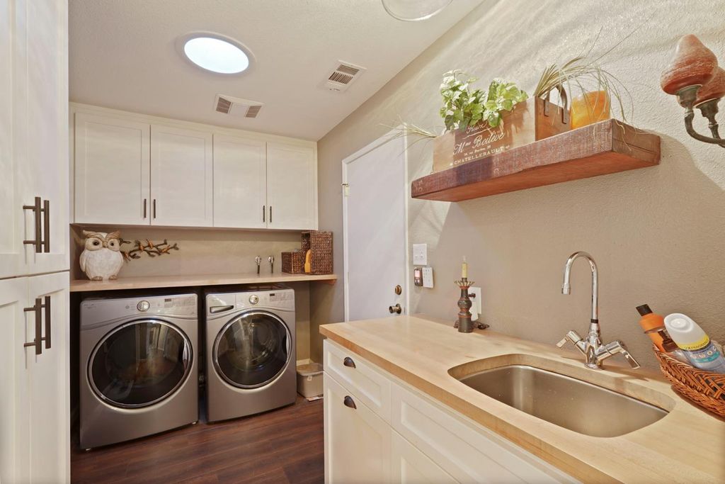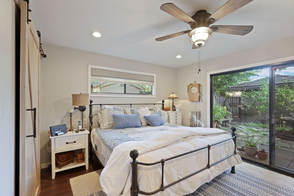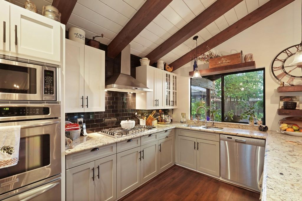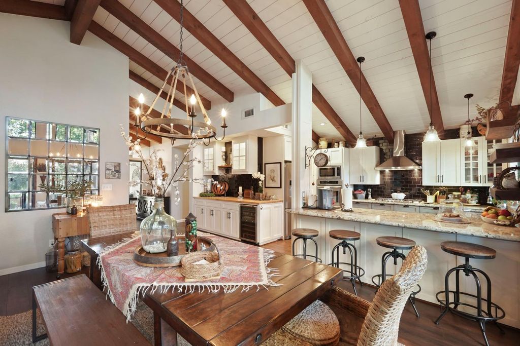 Exceptional Lodi residence blending timeless character with modern luxury. Ideally located near Lodi Lake, downtown Lodi, and historic Woodbridge, this beautifully remodeled 3-bedroom, 2-bath home offers elegant living inside and out. Fully updated in 2017-2018, it showcases cathedral ceilings with exposed wood beams, and a new hearth fireplace. The gourmet kitchen features custom cabinetry, stainless steel appliances, floating shelves, and a wet bar with a wine refrigerator, perfect for entertaining. Natural light fills the home through four skylights, including one in the laundry room, two in the hall, and one in the spa-inspired primary bath. The primary suite includes a walk-in closet, while the laundry room offers built-in cabinets, a sink, and a folding shelf behind a charming barn door. Additional highlights include a newer HVAC system and an attic fan for energy efficiency. Enjoy the park-like setting with a drip system, front deck, and a unique wine cellar/storage shed. The home's front entrance features the original gate from the historic Carnegie Library. A true entertainer's dream, this home impresses at every turn.