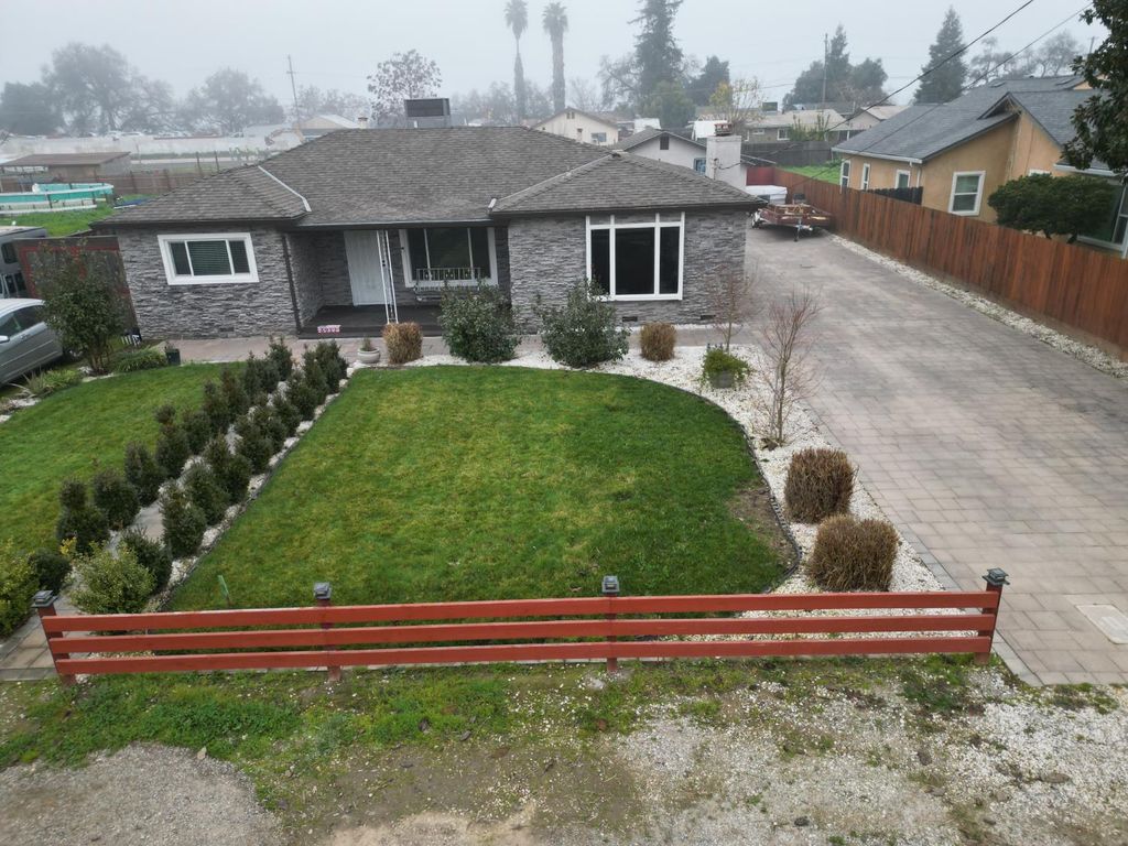 Stop scrollingyour search ends here! This isn't just a house; it's a stylish, move-in-ready sanctuary perfectly situated in the heart of Riverbank. From the moment you pull up, the incredible curb appeal and striking full stone faade set a "storybook" stage for the beauty that lies within. This rare gem sits on an expansive lot of over acre, offering massive potential for a future ADU or multi-family expansion. Step inside to discover a thoughtfully designed open floor plan that flows effortlessly, featuring dual living areas that provide the versatility you've been looking for. Whether you need a formal dining space or a separate gathering area, this home adapts to your lifestyle. The interior has been completely refreshed with modern touches, including new interior paint, stunning luxury LVP flooring in the main living spaces, and brand-new, plush carpeting in all three bedrooms. The heart of the home is the chef-inspired kitchen, which boasts elegant granite countertops, a stainless steel hood, and a new dishwasher. This home is ideal for entertaining with your very own built-in bar area, complete with a sink and ready to make drinks and create long-lasting memories.. Both bathrooms have been tastefully updated with new tile flooring and beautiful granite countertops to match the home's contemporary aesthetic. The excitement continues outdoors, where you'll find your own private oasis. The backyard is fully enclosed by a high-quality, 7-foot redwood privacy fence, creating a secluded environment for relaxation. Dive into the large built-in pool, complete with a diving board, or gather around the fire pit on the spacious patio. Beyond the pool area, the property extends into a massive rear section, offering endless possibilities for a lush garden, a play area, or your dream workshop. Parking and storage are never an issue here. The property features a magnificent 100-foot private Belgard paver driveway, along with a secondary driveway, providing more than enough room for multiple vehicles, a boat, and a large RV. Lush, mature landscaping with a self-irrigation system keeps the grounds looking vibrant year-round with minimal effort. This property is a rare find that combines rural-style tranquility with downtown convenience. Don't miss your chance to own this one-of-a-kind Riverbank treasure!