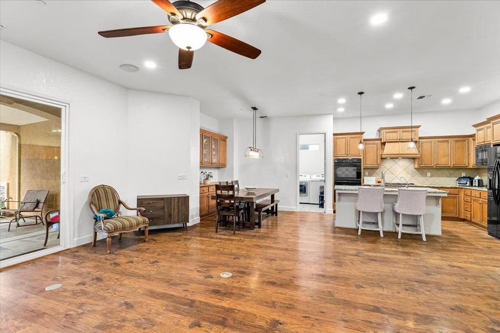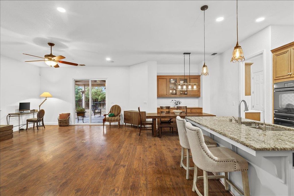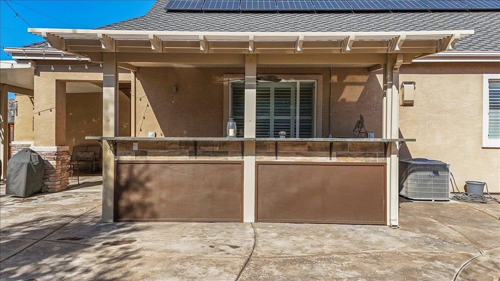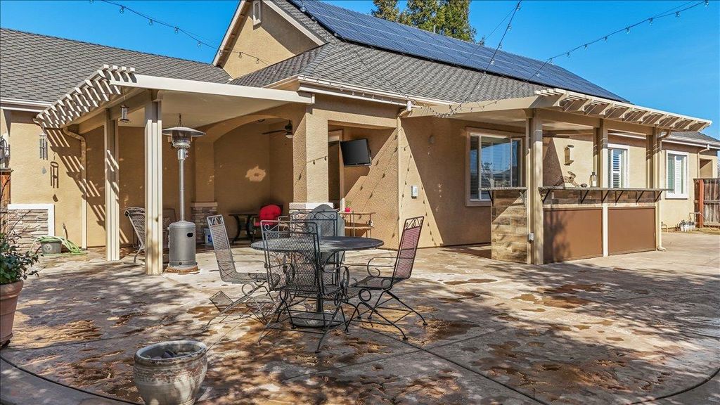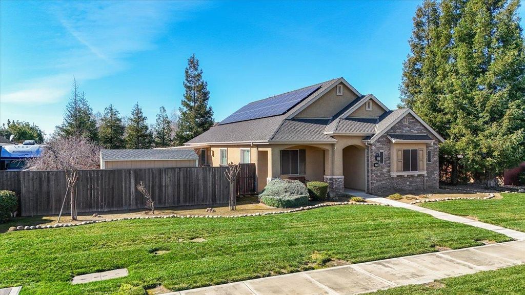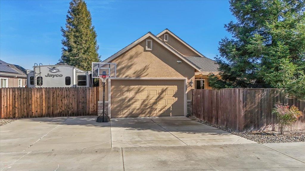 Enjoy the best of Ripon living in this beautifully updated single-story home offering nearly 1,900 sq ft of bright, comfortable living space. Fresh interior paint creates a clean, airy feel, while brand-new energy-efficient LED recessed lighting adds a modern touch throughout. Ideal for entertaining, the spacious kitchen features double ovens, island, and the backyard is ready for all of your get togethers w/ built in BBQ and dining bar. Situated on a huge lot, this property offers exceptional outdoor space with low-maintenance front and rear yards perfect for enjoying without the upkeep. The giant RV access provides incredible flexibility for extra vehicles, trailers, or recreational toys. The solar system delivers valuable energy cost savings, enhancing both efficiency and affordability. The spacious primary suite serves as a relaxing retreat, featuring a large walk-in closet PLUS an additional standard closet a rare and highly desirable combination. Location is outstanding. Just a stone's throw from Ripon Social, Primos, Austin's Coffee, and Mistlin Park, placing dining, coffee, and recreation moments away. Commuters will appreciate the quick and convenient access to Highway 99. This home blends comfort, efficiency, and the charm of Ripon's sought-after lifestyle.