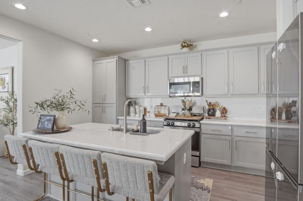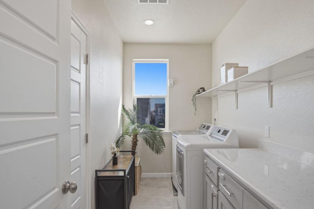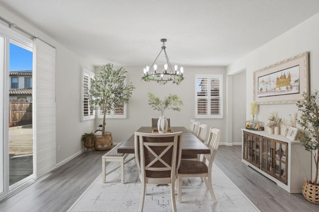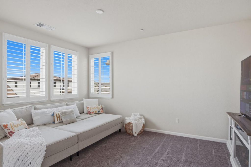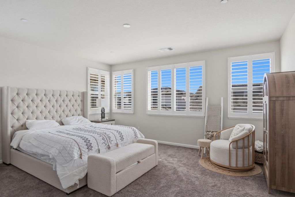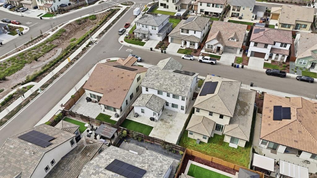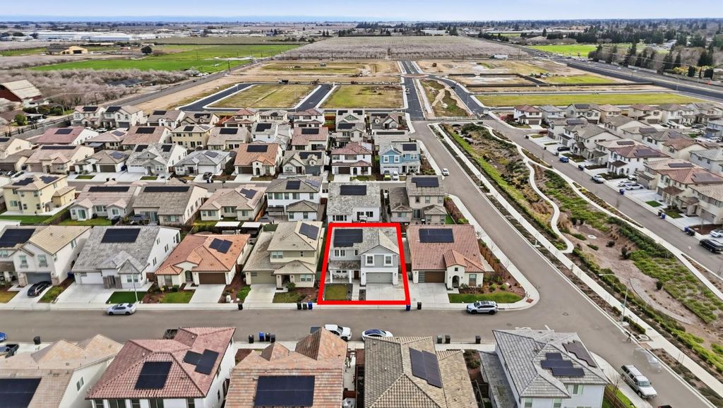 Stunning modern residence built in 2022, offering over 2,800 sq. ft. of thoughtfully designed living space in highly desirable Founders Point Subdivision. This spacious 4 bed/4 bath features an open floor plan ideal for both everyday living and entertaining. Warm natural light fills the generous living areas, while the well-appointed kitchen provides ample cabinet and counter space. Plantation shutters in the whole house. Upstairs offers a versatile layout including multiple bathrooms for convenience and privacy. Attached garage and desirable lot size enhance everyday functionality. OWNED SOLAR. Located in a vibrant Modesto neighborhood with easy access to shopping, dining, parks, and top schools. This home combines contemporary comfort with timeless appeal in a community that's hard to beat. Full list of upgrades is attached. Garage gym n mirror, cabinets n pressure wash don't stay. Refrigerator, washer dryer n wine cooler and cameras don't stay.