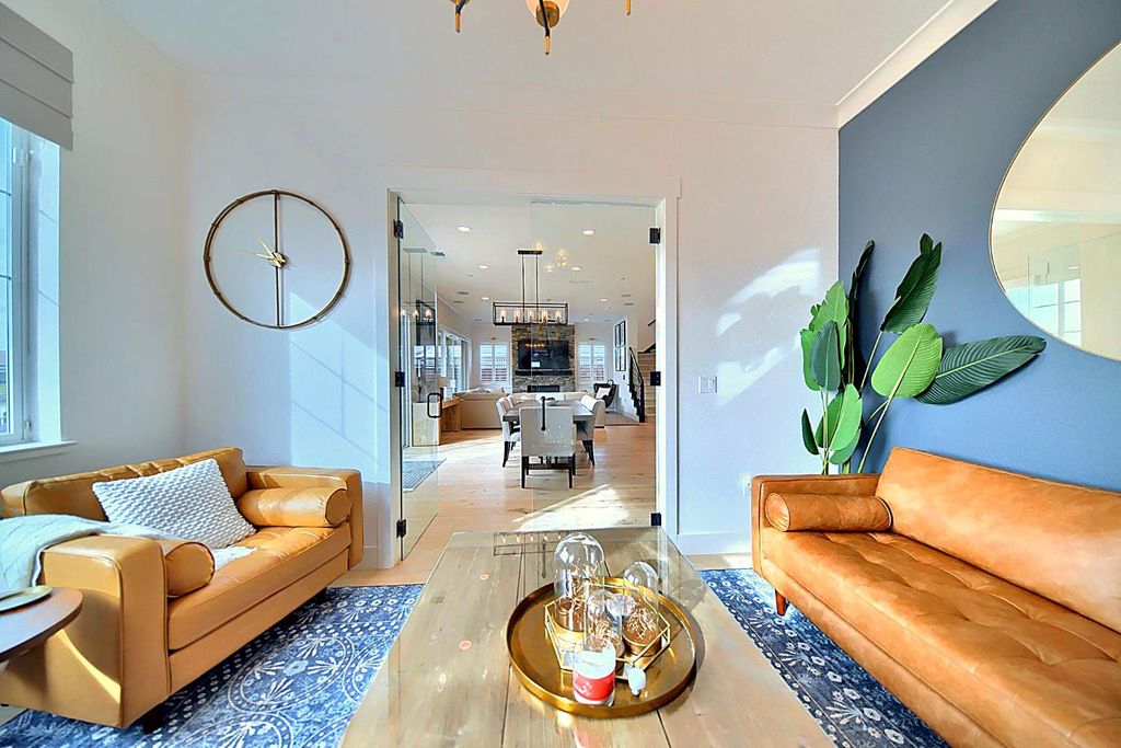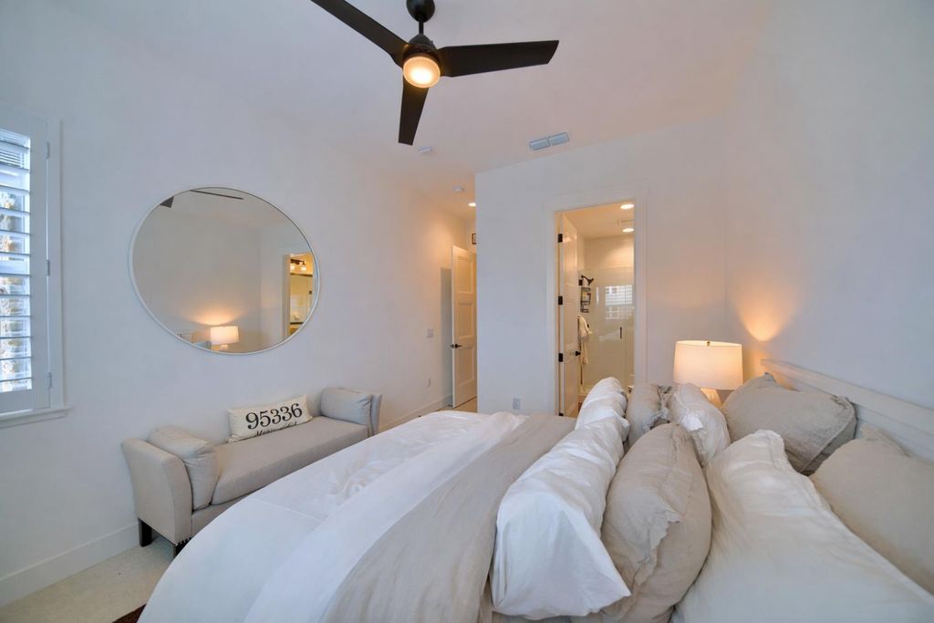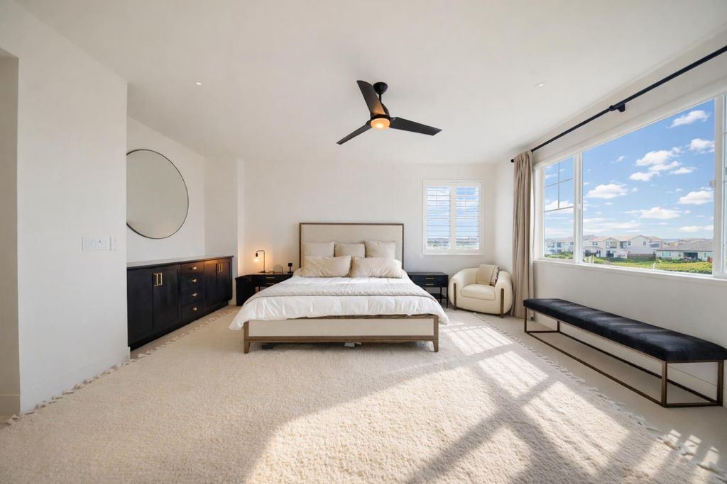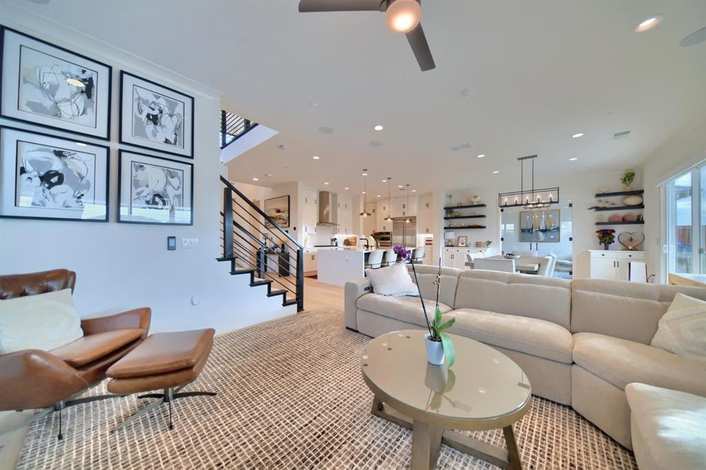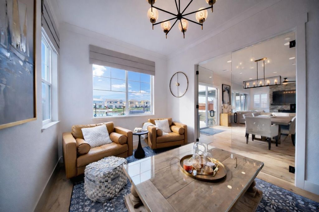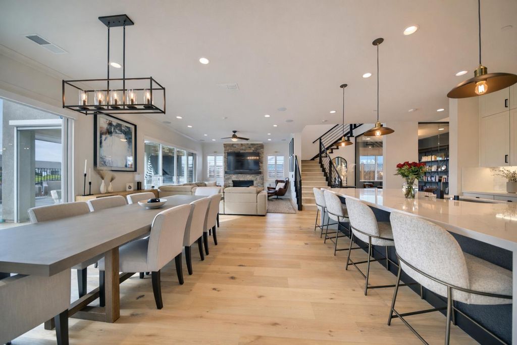 2150 Mulholland Dr is a rare north-facing lakefront opportunity positioned on one of the most desirable lots in River Islands with no side neighbor to the east and only a single-story to the west, creating exceptional privacy and panoramic water views. The property includes its own private boat dock that is not shared, a feature rarely available in this community. Real natural hardwood floors span the entire downstairs, leading into a statement kitchen anchored by a waterfall island with abundant seating, ceiling-height cabinetry, soft-close cabinets and drawers, commercial-grade stainless steel appliances, and a built-in refrigerator. An extended butler's area provides additional cabinetry, coffee bar space, and storage, complemented by a spacious walk-in pantry. Massive sliding glass doors stretch across the entire back of the home in both the dining and family rooms, framing unobstructed lake views and creating seamless indoor-outdoor living. One dramatic floor-to-ceiling glass room captures sweeping water views, while a second glass-enclosed room offers a refined library-style retreat with timeless character. The California Room extends the living space outdoors with automatic smart blinds, surround sound, and a fireplace with blower, all overlooking a fully landscaped backyard designed for year-round enjoyment. A downstairs bedroom with connected full bath offers flexibility, along with a separate hall half bath. Downstairs bathrooms feature tile flooring and quartz countertops that match the kitchen surfaces, and all secondary bathrooms include upgraded tile finishes. Upstairs offers upgraded carpet with premium pad, a massive loft, and sliding doors leading to a deck capturing lake views from multiple angles. The primary suite is positioned to maximize water views and flows into a spa-inspired bath featuring quartz countertops, split vanities, soaking tub, rain walk-in shower, elegant tile flooring, and a walk-in closet. The laundry room includes a sink, cabinetry, and upgraded tile flooring. Additional highlights include a 3-car tandem garage, upgraded staircase, dual-zone HVAC, ceiling fans, upgraded lighting throughout, surround sound inside and out, and owned solar with added panels. A statement property defined by rare lot positioning, architectural presence, and true lakefront living.
