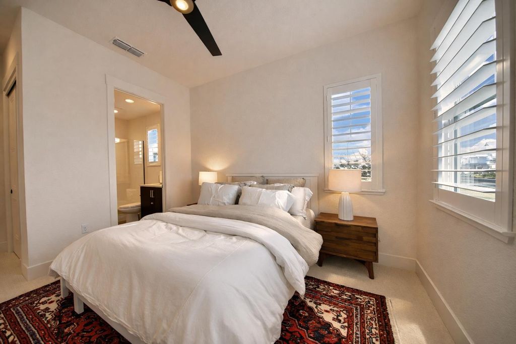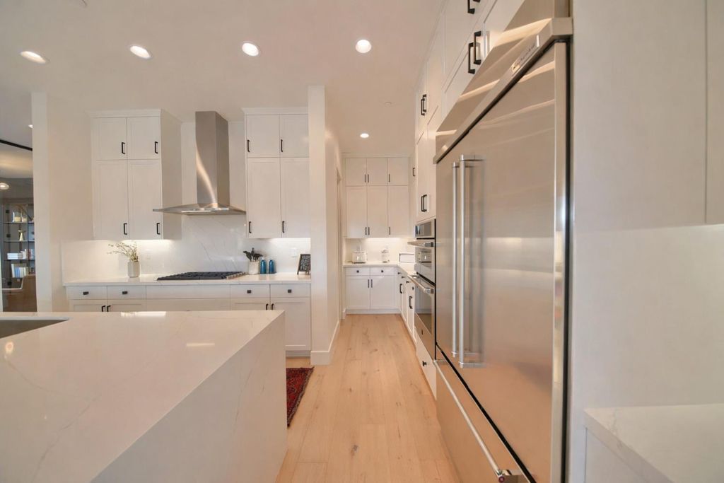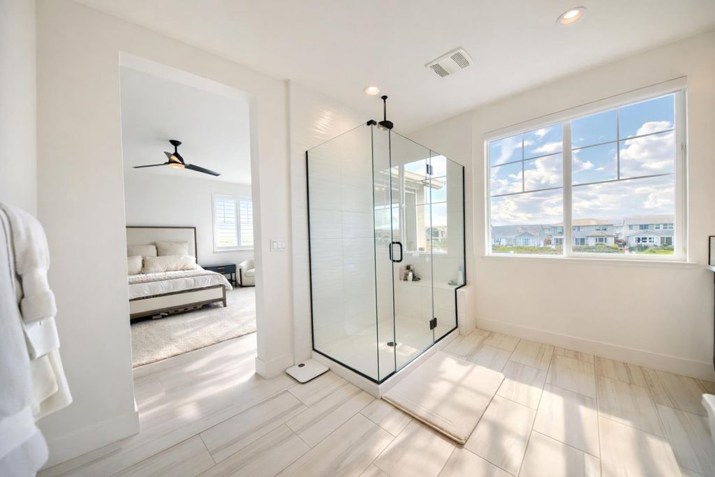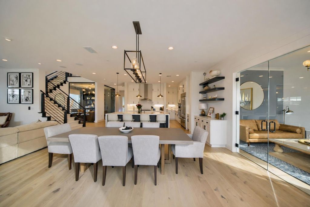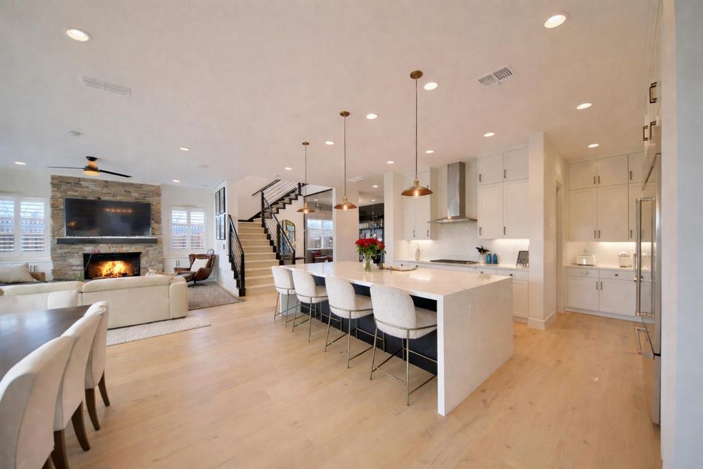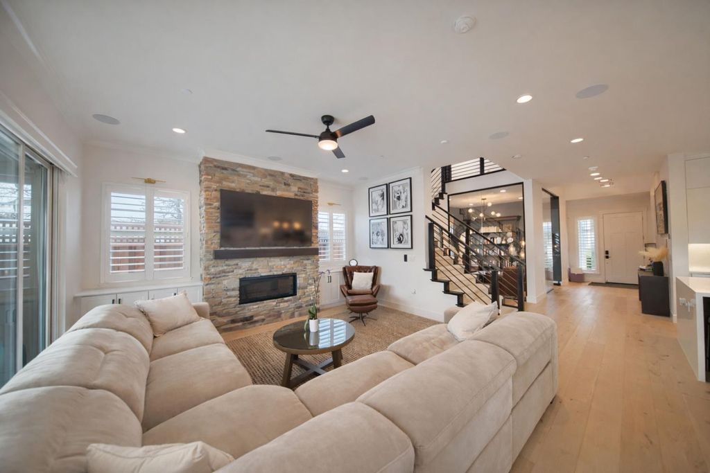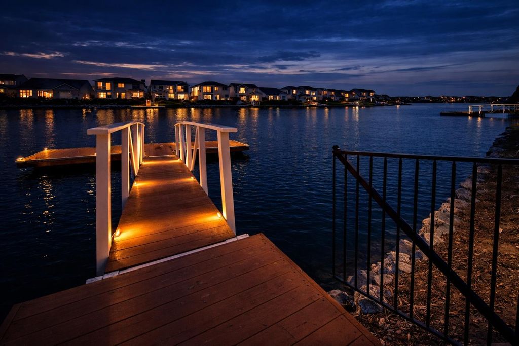 2150 Mulholland Dr is a rare north-facing lakefront opportunity positioned on one of the most desirable lots in River Islands with no side neighbor to the east and only a single-story to the west, creating exceptional privacy and panoramic water views. The property includes its own private boat dock that is not shared, a feature rarely available in this community. Real natural hardwood floors span the entire downstairs, leading into a statement kitchen anchored by a waterfall island with abundant seating, ceiling-height cabinetry, soft-close cabinets and drawers, commercial-grade stainless steel appliances, and a built-in refrigerator. An extended butler's area provides additional cabinetry, coffee bar space, and storage, complemented by a spacious walk-in pantry. Massive sliding glass doors stretch across the entire back of the home in both the dining and family rooms, framing unobstructed lake views and creating seamless indoor-outdoor living. One dramatic floor-to-ceiling glass room captures sweeping water views, while a second glass-enclosed room offers a refined library-style retreat with timeless character. The California Room extends the living space outdoors with automatic smart blinds, surround sound, and a fireplace with blower, all overlooking a fully landscaped backyard designed for year-round enjoyment. A downstairs bedroom with connected full bath offers flexibility, along with a separate hall half bath. Downstairs bathrooms feature tile flooring and quartz countertops that match the kitchen surfaces, and all secondary bathrooms include upgraded tile finishes. Upstairs offers upgraded carpet with premium pad, a massive loft, and sliding doors leading to a deck capturing lake views from multiple angles. The primary suite is positioned to maximize water views and flows into a spa-inspired bath featuring quartz countertops, split vanities, soaking tub, rain walk-in shower, elegant tile flooring, and a walk-in closet. The laundry room includes a sink, cabinetry, and upgraded tile flooring. Additional highlights include a 3-car tandem garage, upgraded staircase, dual-zone HVAC, ceiling fans, upgraded lighting throughout, surround sound inside and out, and owned solar with added panels. A statement property defined by rare lot positioning, architectural presence, and true lakefront living.